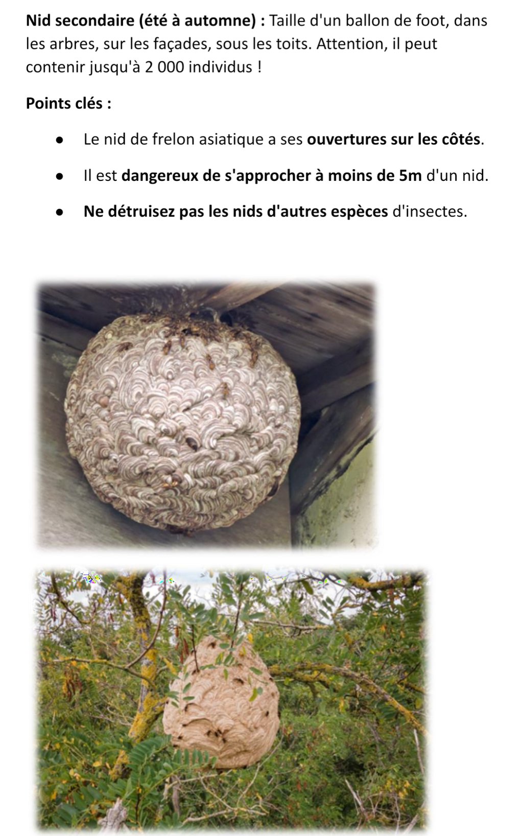 Des nids de frelons ont été repérés et détruits sur la commune.