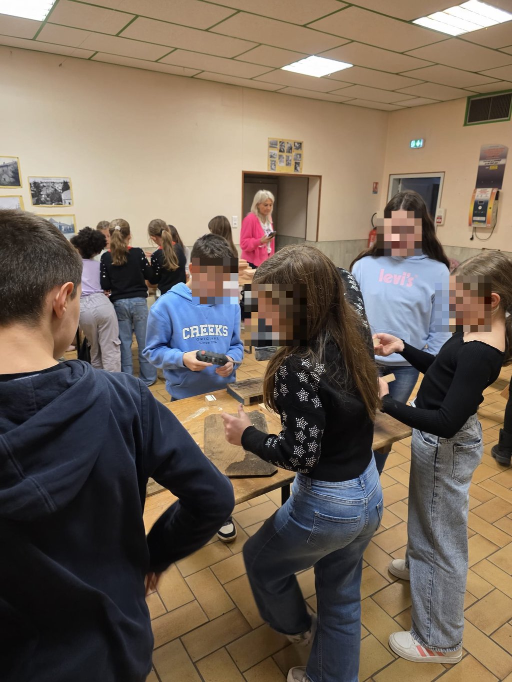 Depuis la cour de récréation, les écoliers sont aux premières loges du chantier. En conclusion de l’après-midi, à l’aide d’échantillons de matériaux employés sur le chantier de la MAM et dérivés, il a été possible de mettre des mots, de toucher, d’assembler, de manipuler les composants de la construction, d’expliquer comment passe-t-on des arbres de nos forêts à des isolants performants, poteaux-poutres de charpentes, bardage, meubles etc.